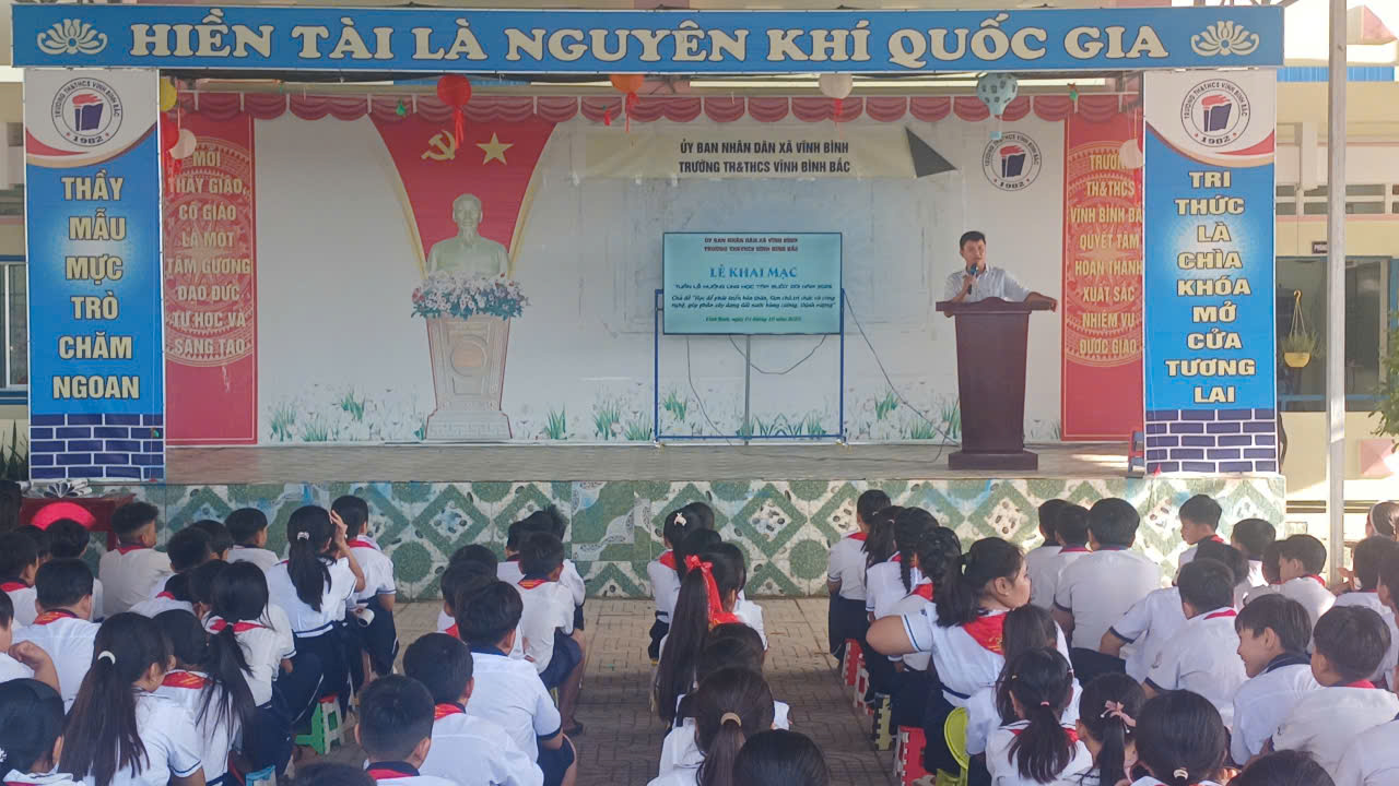 Hôm nay, ngày 01/10/2025 Trường TH&THCS Vĩnh Bình Bắc đã tổ chức Tuần lễ hưởng ứng học tập suốt đời năm 2025 với nhiều hoạt động thiết thực, ý nghĩa nhằm lan tỏa tinh thần học tập suốt đời đến toàn thể cán bộ, giáo viên, học sinh và cộng đồng địa phương. Với chủ đề “Học để phát triển bản thân, làm chủ tri thức và công nghệ, góp phần xây dựng đất nước hùng cường, thịnh vượng”, “Tuần lễ học tập suốt đời” năm nay được tổ chức từ ngày 01/10 đến ngày 07/10/2025. Đây là dịp để toàn thể thầy và trò trong nhà trường cùng nhau khẳng định ý nghĩa, tầm quan trọng của việc học tập thường xuyên, liên tục, học mọi lúc, mọi nơi, qua đó xây dựng xã hội học tập vững mạnh.