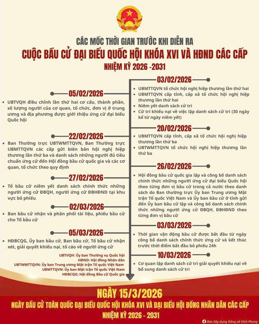 CHI TIẾT CÁC MỐC THỜI GIAN DIỄN RA BẦU CỬ ĐẠI BIỂU QUỐC HỘI KHÓA XVI, ĐẠI BIỂU HĐND CÁC CẤP NHIỆM KỲ 2026-2031