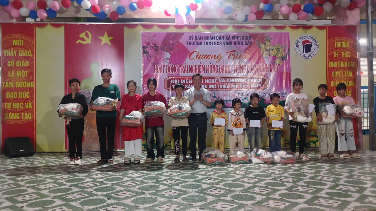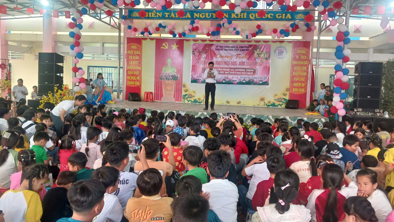 Hòa trong không khí rộn ràng chào đón mùa xuân mới, ngày 07/02/2026 trường TH&THCS Vĩnh Bình Bắc đã tổ chức chương trình “Mừng Đảng – Mừng Xuân 2026” với nhiều hoạt động ý nghĩa, tạo nên sân chơi vui tươi, lành mạnh cho học sinh, giáo viên và phụ huynh.
