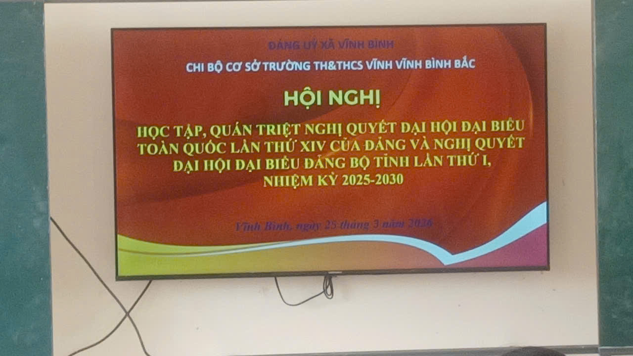 Ngày 25/3/2026, Chi bộ cơ sở trường TH&THCS Vĩnh Bình Bắc tổ chức Hội nghị học tập, quán triệt Nghị quyết Đại hội Đại biểu toàn quốc lần thứ XIV của Đảng và Nghị quyết Đại hội Đại biểu Đảng bộ tỉnh lần thứ I, nhiệm kỳ 2025-2030.