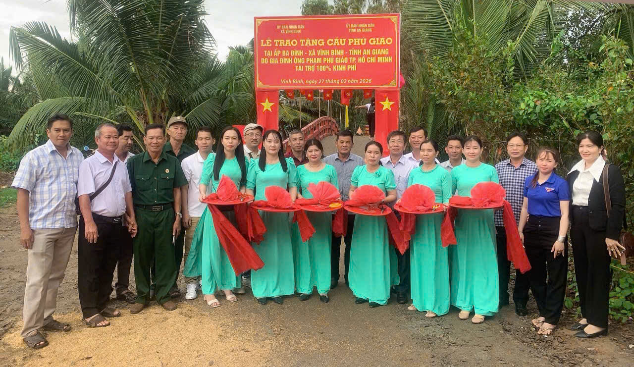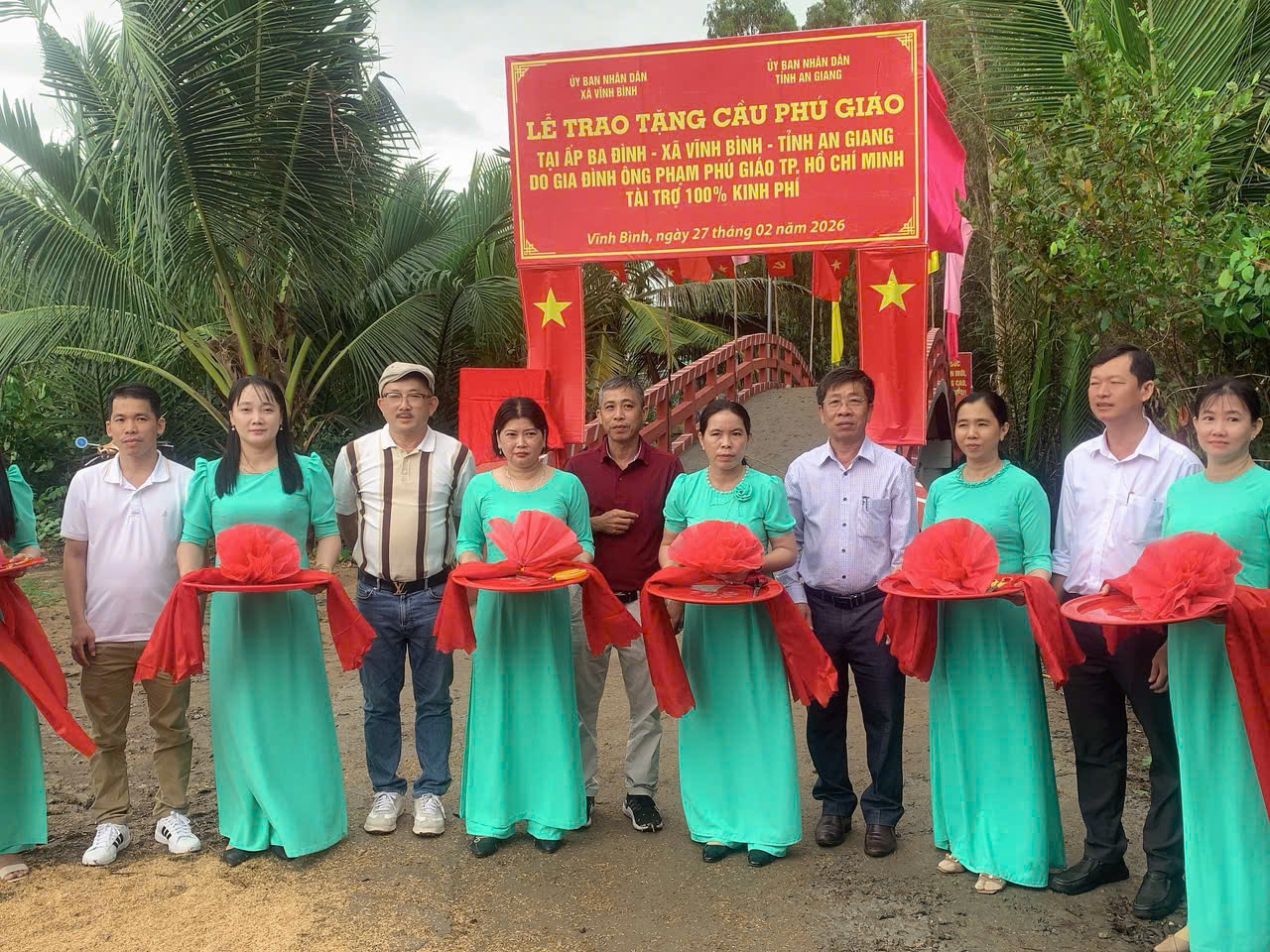 Sáng ngày 27/02/2026, UBND xã Vĩnh Bình phối hợp đơn vị nhà tài trợ tổ chức Lễ Khánh thành cầu Kênh Xáng 3 (Cầu Phú Giáo) tọa lạc Ấp Ba đình, xã Vĩnh Bình, tỉnh An Giang.