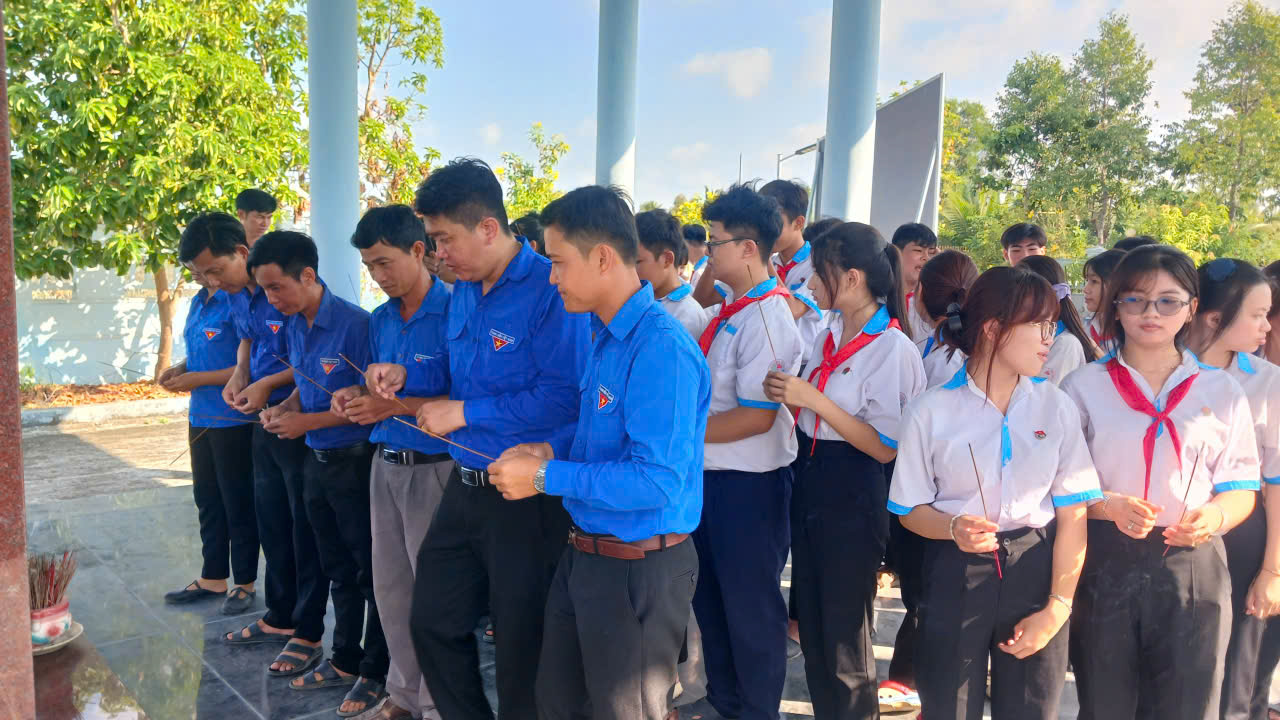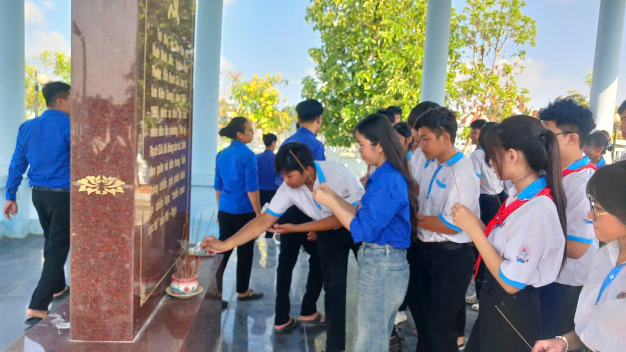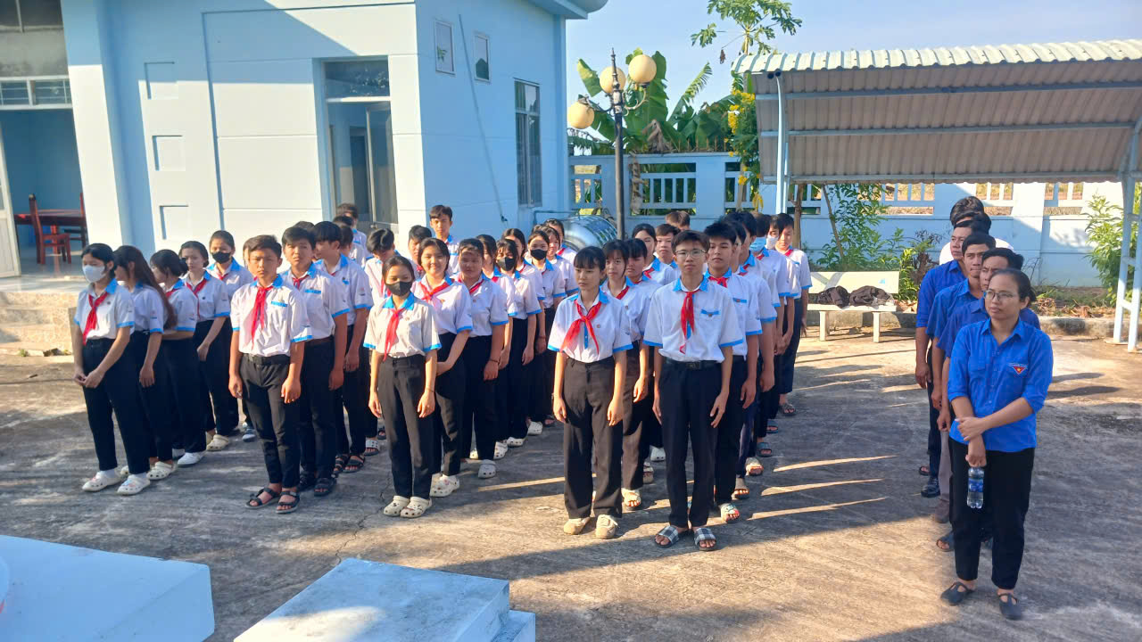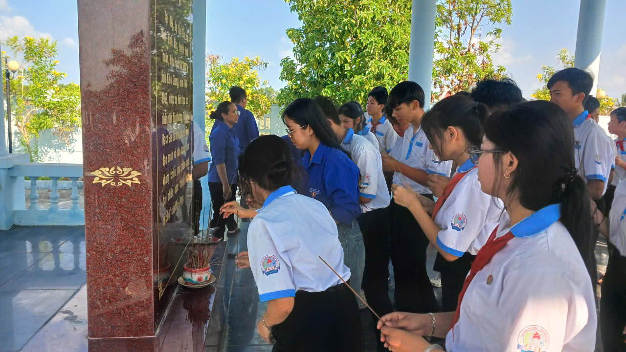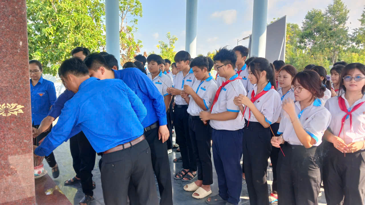 Sau buổi lễ, thầy và trò nhà trường đã tham gia hành trình về nguồn tại Khu di tích Ấp Xẻo Gia – một địa chỉ đỏ giàu ý nghĩa lịch sử. Tại đây, đoàn đã dâng hương tưởng niệm và bày tỏ lòng biết ơn sâu sắc đối với các thế hệ cha anh đã hy sinh vì độc lập, tự do của dân tộc.