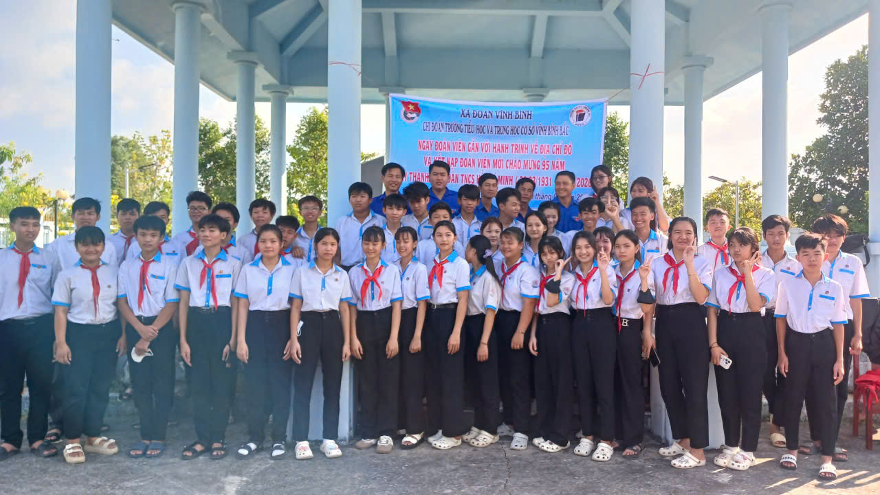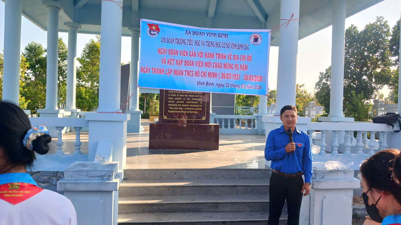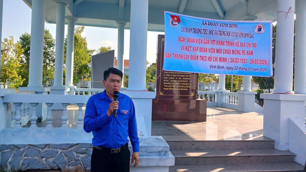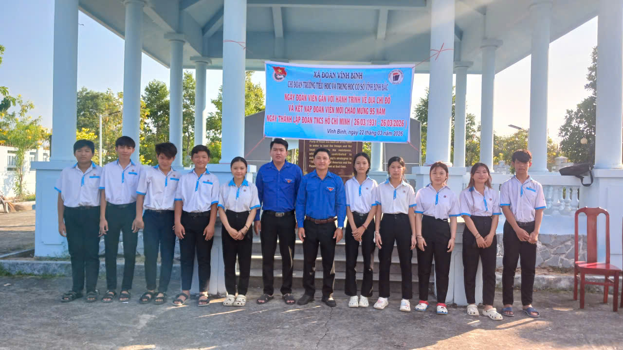 Nhằm giáo dục truyền thống cách mạng, bồi dưỡng lý tưởng sống và phát triển tổ chức Đoàn trong nhà trường, ngày 22/3/2026 Trường TH&THCS Vĩnh Bình Bắc đã long trọng tổ chức lễ kết nạp đoàn viên mới kết hợp với hoạt động hành trình về địa chỉ đỏ tại Khu di tích Ấp Xẻo Gia.