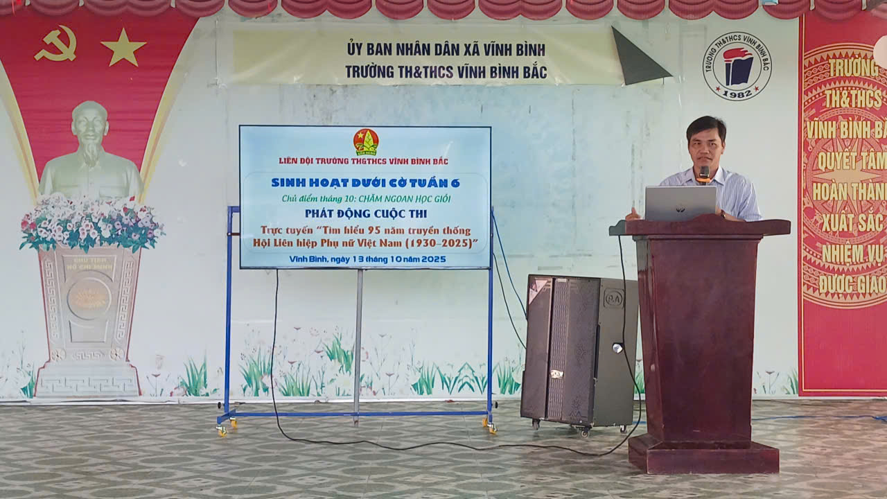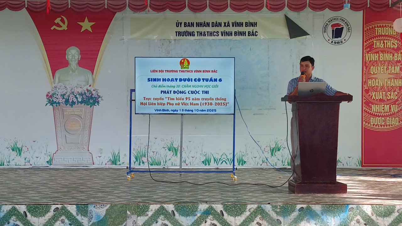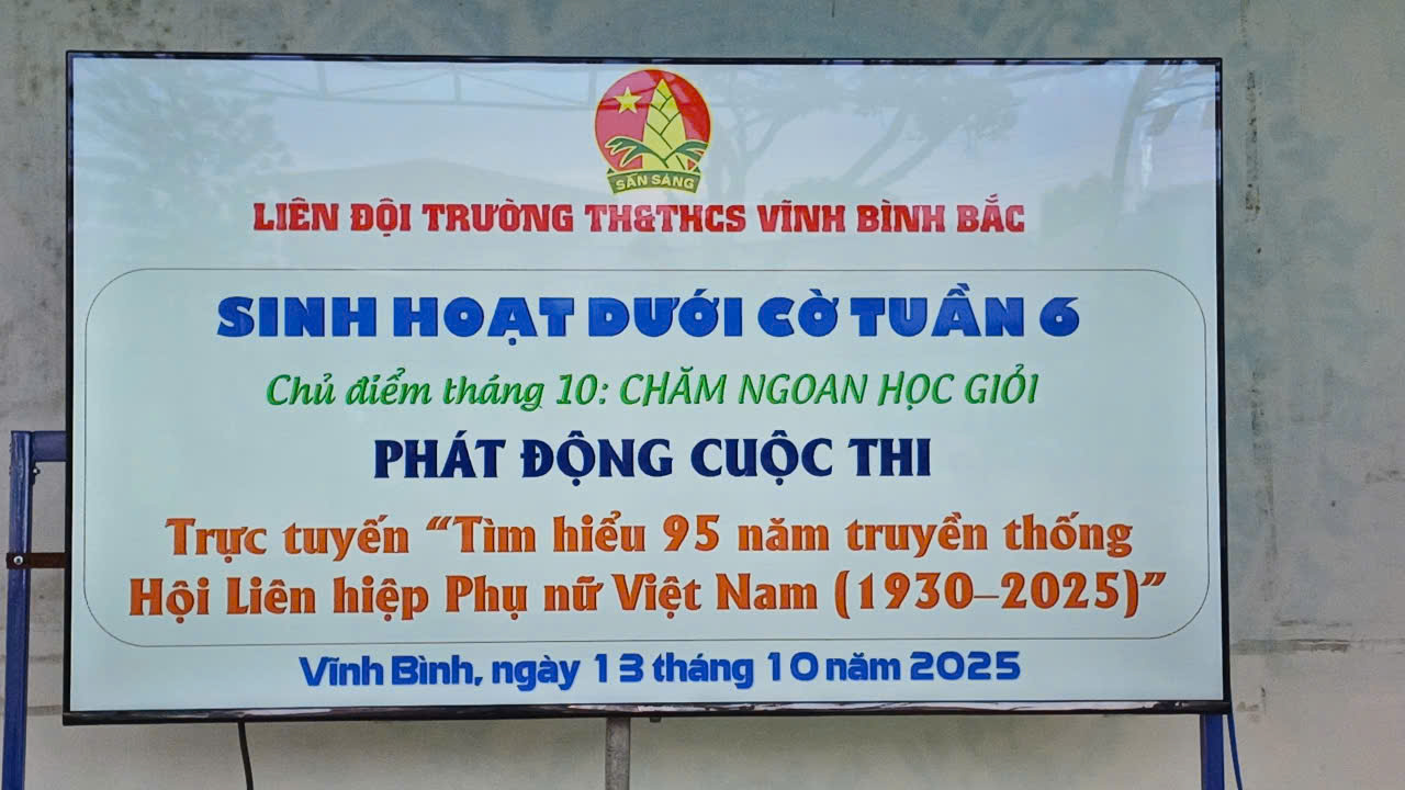Hôm nay ngày 13/10/2025, trong không khí vui tươi của buổi sinh hoạt dưới cờ đầu tuần thứ 6, chúng ta cùng hướng về chủ đề “Chăm ngoan – Học giỏi” – một phẩm chất đáng quý và là mục tiêu phấn đấu của mỗi học sinh trong mái trường thân yêu. Phát động cuộc thi trực tuyến ” Tìm hiểu 95 năm truyền thống Hội Liên hiệp phụ nữ Việt Nam (1930-2025)”.