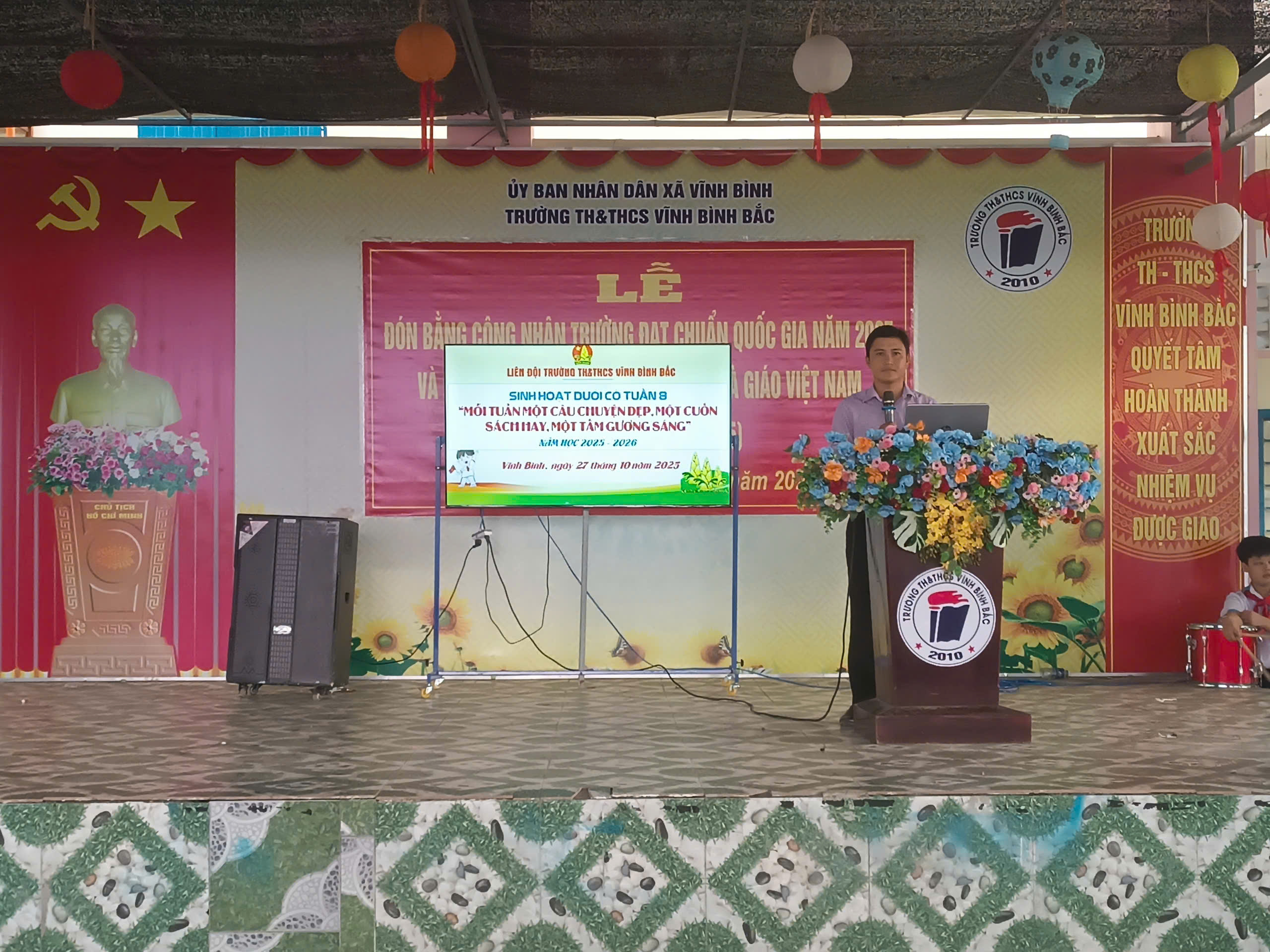 Buổi sinh hoạt dưới cờ Tuần 9 khép lại trong không khí vui tươi, phấn khởi. Chủ đề “Mỗi tuần một câu chuyện đẹp, một cuốn sách hay, một tấm gương sáng” tiếp tục là hoạt động ý nghĩa, góp phần giáo dục toàn diện cho học sinh Trường TH&THCS Vĩnh Bình Bắc trong năm học 2025 – 2026.