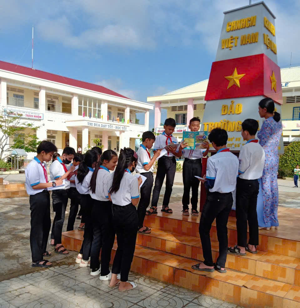 Sáng ngày 09/12/2025, cô Phan Minh Phượng dạy tiết Lịch sử 8, bài Quốc phòng-An ninh tích hợp mô hình cột mốc Trường sa vào bài dạy. Việc giáo dục chủ quyền biển đảo trong thời đại ngày nay có ý nghĩa vô cùng quan trọng, góp phần bồi dưỡng lòng yêu nước và niềm tự hào dân tộc cho thế hệ trẻ. Thông qua các hoạt động học tập và trải nghiệm tìm hiểu về chủ quyền biển đảo thiêng liêng của Tổ quốc bên cạnh mô hình cột mốc Trường Sa, học sinh hiểu rõ hơn về vị trí chiến lược của biển đảo Việt Nam đối với kinh tế, quốc phòng và an ninh quốc gia. Từ đó, các em hình thành ý thức trách nhiệm trong việc bảo vệ và giữ gìn chủ quyền thiêng liêng của Tổ quốc và có khả năng nhận diện, phản bác các luận điệu sai trái, xuyên tạc về biển đảo trên mạng xã hội và trong đời sống. Đây cũng là cách giáo dục trực quan sinh động, giúp kiến thức quốc phòng – an ninh trở nên gần gũi và dễ tiếp nhận hơn. Qua đó, tinh thần yêu nước, lòng tự hào dân tộc và ý thức giữ gìn biển đảo quê hương được bồi đắp trong mỗi học sinh giúp các em vững vàng, bản lĩnh và tự tin hơn trong quá trình hội nhập quốc tế, góp phần xây dựng và bảo vệ đất nước.