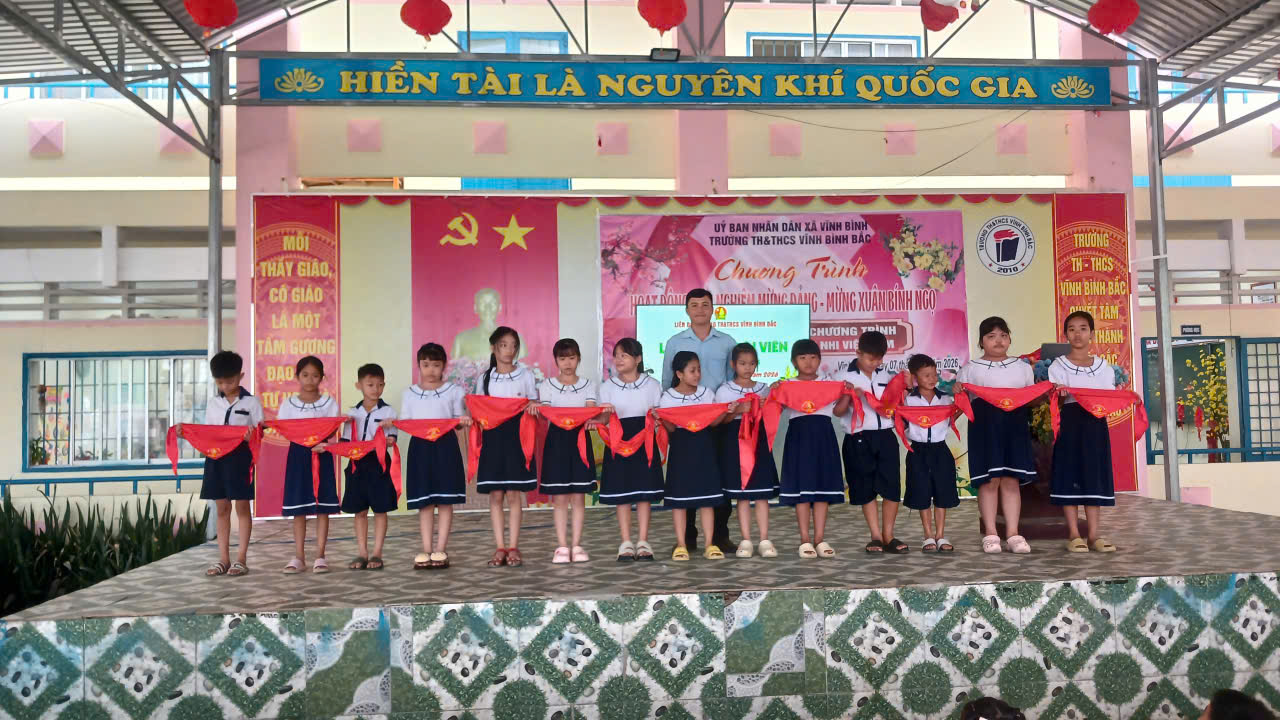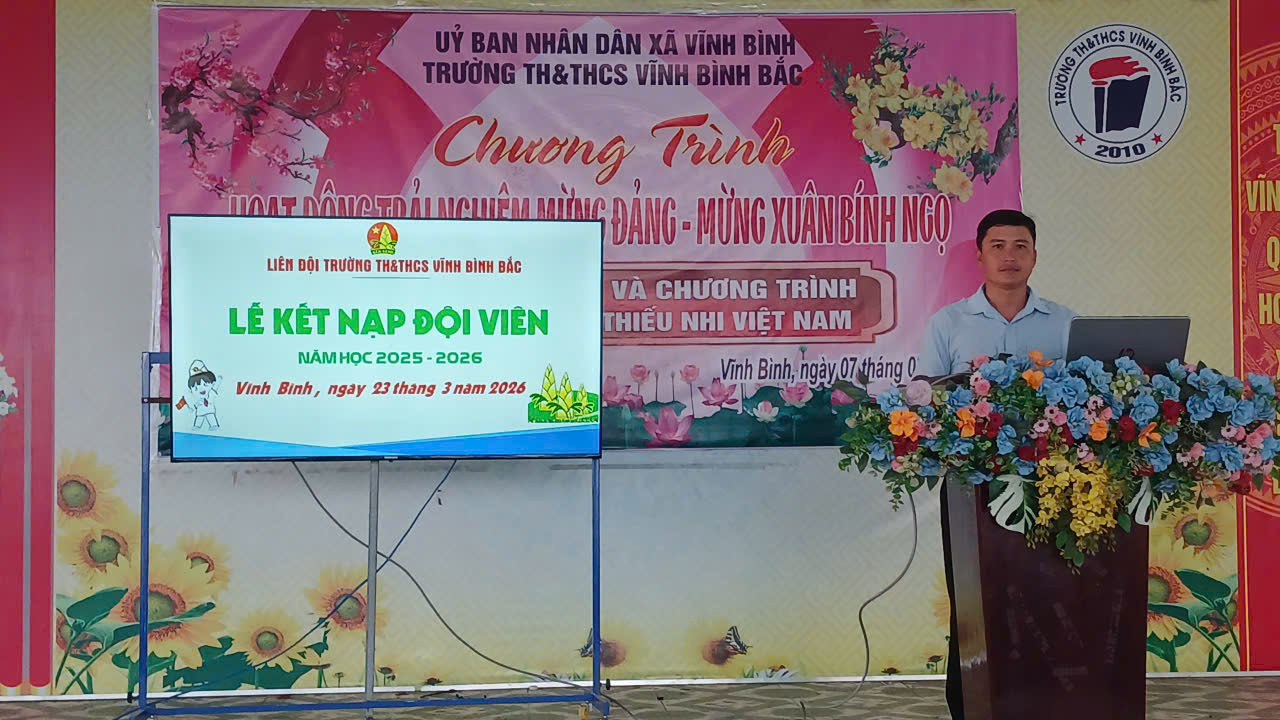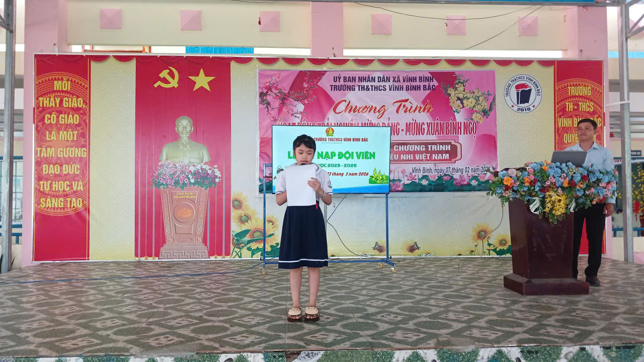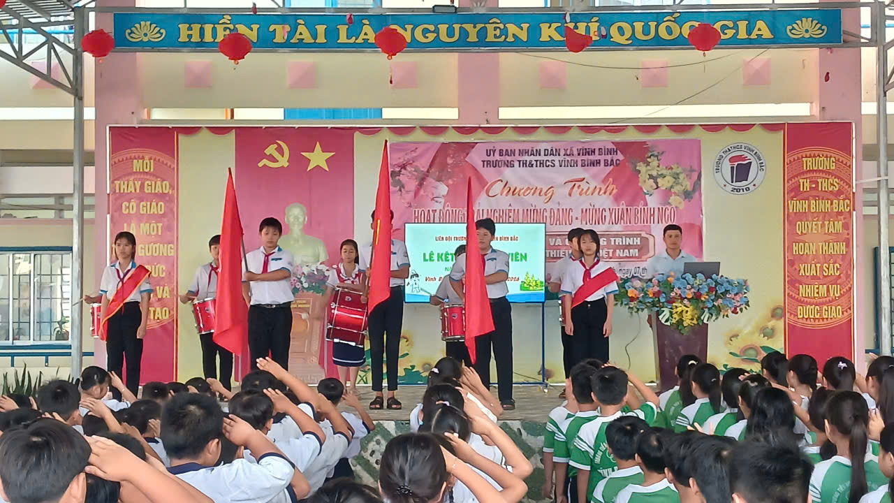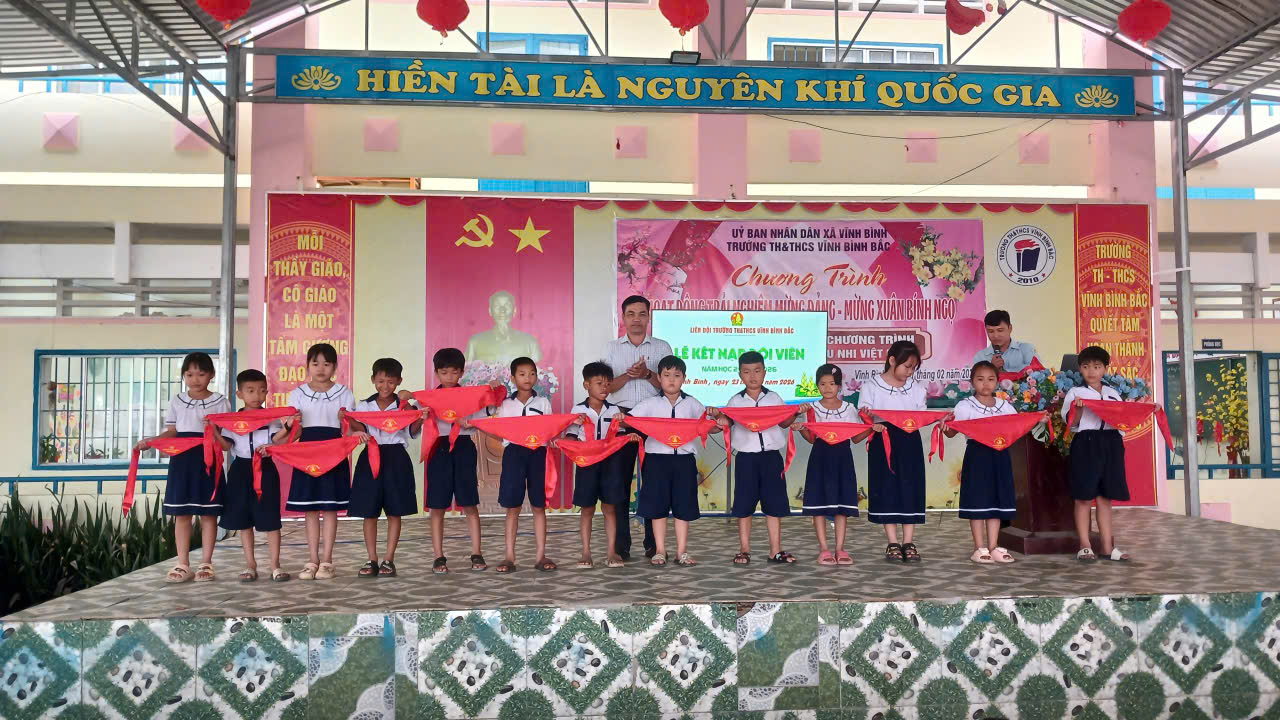 Nhằm thiết thực chào mừng Ngày hội “Thiếu nhi vui khỏe – Tiến bước lên Đoàn”, đồng thời hướng tới kỷ niệm 95 năm Ngày thành lập Đoàn TNCS Hồ Chí Minh (26/3/1931-26/3/2026) và 85 năm Ngày thành lập Đội TNTP Hồ Chí Minh (15/5/1941-15/5/2026), Liên đội Trường TH&THCS Vĩnh Bình Bắc đã long trọng tổ chức Lễ kết nạp Đội viên mới cho học sinh khối 3 trong năm học 2025 – 2026.